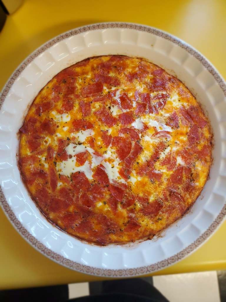 - layer cheese and pepperoni in pie pan